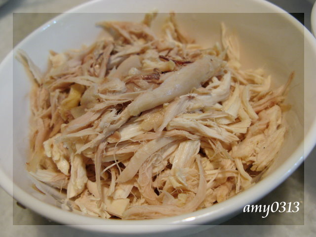 "雞肉飯"的主角雞肉絲(就是用剩下的雞胸肉撕碎而成)。